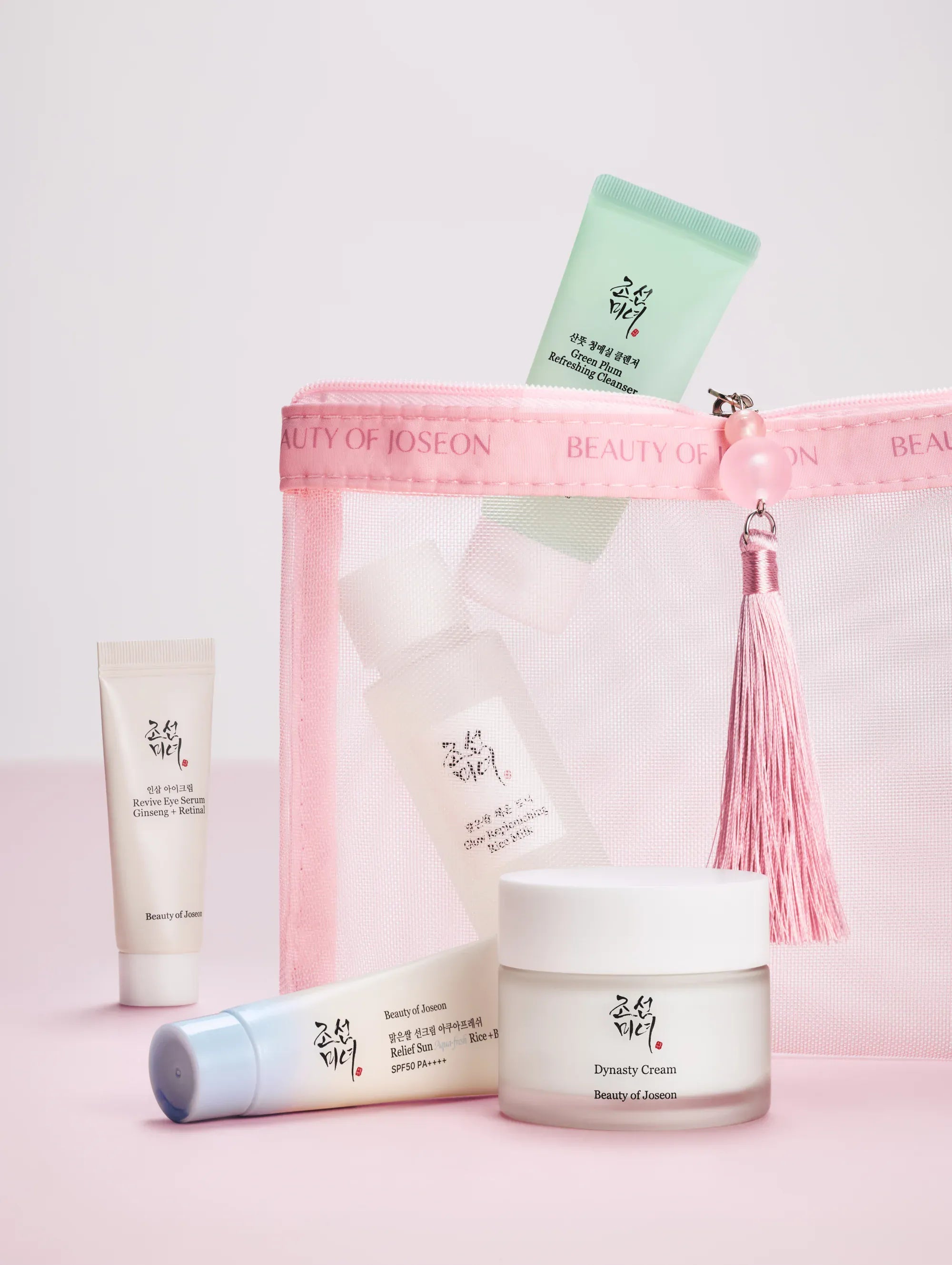 This travel-size ritual is ready for your next adventure. We curated everything you need for a full Beauty of Joseon skincare routine, then made it the perfect size to toss in your carry-on or bag. Cleanse, tone, hydrate, awaken, and shield with our best sellers, then zip them up in your exclusive travel pouch(complete with a tasseled zipper charm for luck).